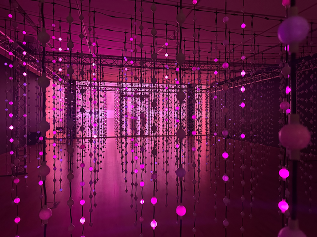 The amount of different mediums, from mirrors to lights to paintings, made the experience very engaging and interesting to walk around and access a glimpse into different views of the world. The topics were heavy though they felt accessible presented in unique and abstract ways and I found that interesting.